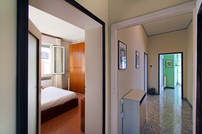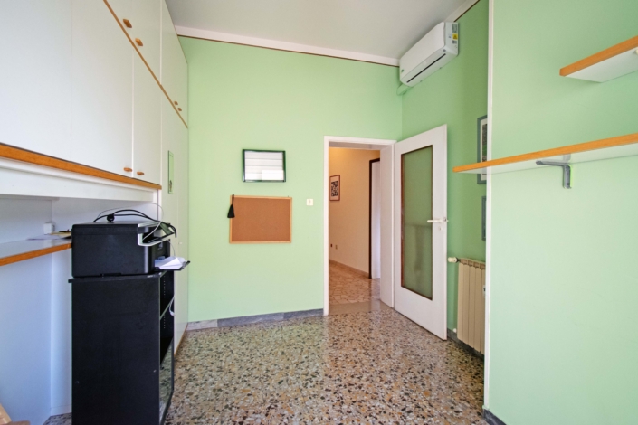 L’appartamento si compone di: ingresso arredabile, ampio soggiorno affacciato su una spaziosa terrazza, cucinotto, due camere matrimoniali, camera singola con balcone, e bagno finestrato con vasca.
